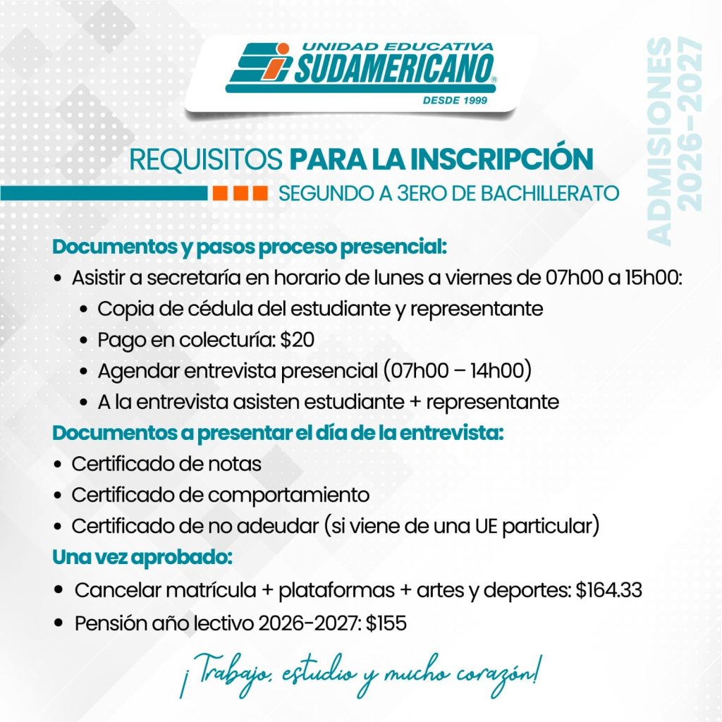 - Certificado de no adeudar (si viene de una Unidad Educativa Particular)